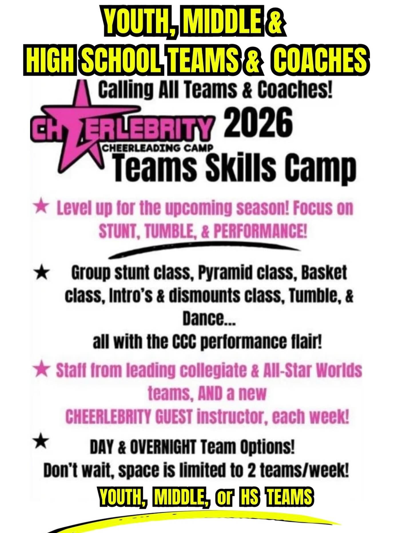 Get excited for our 2026 ★ CHEERLEBRITY ★ Guest INSTRUCTORS